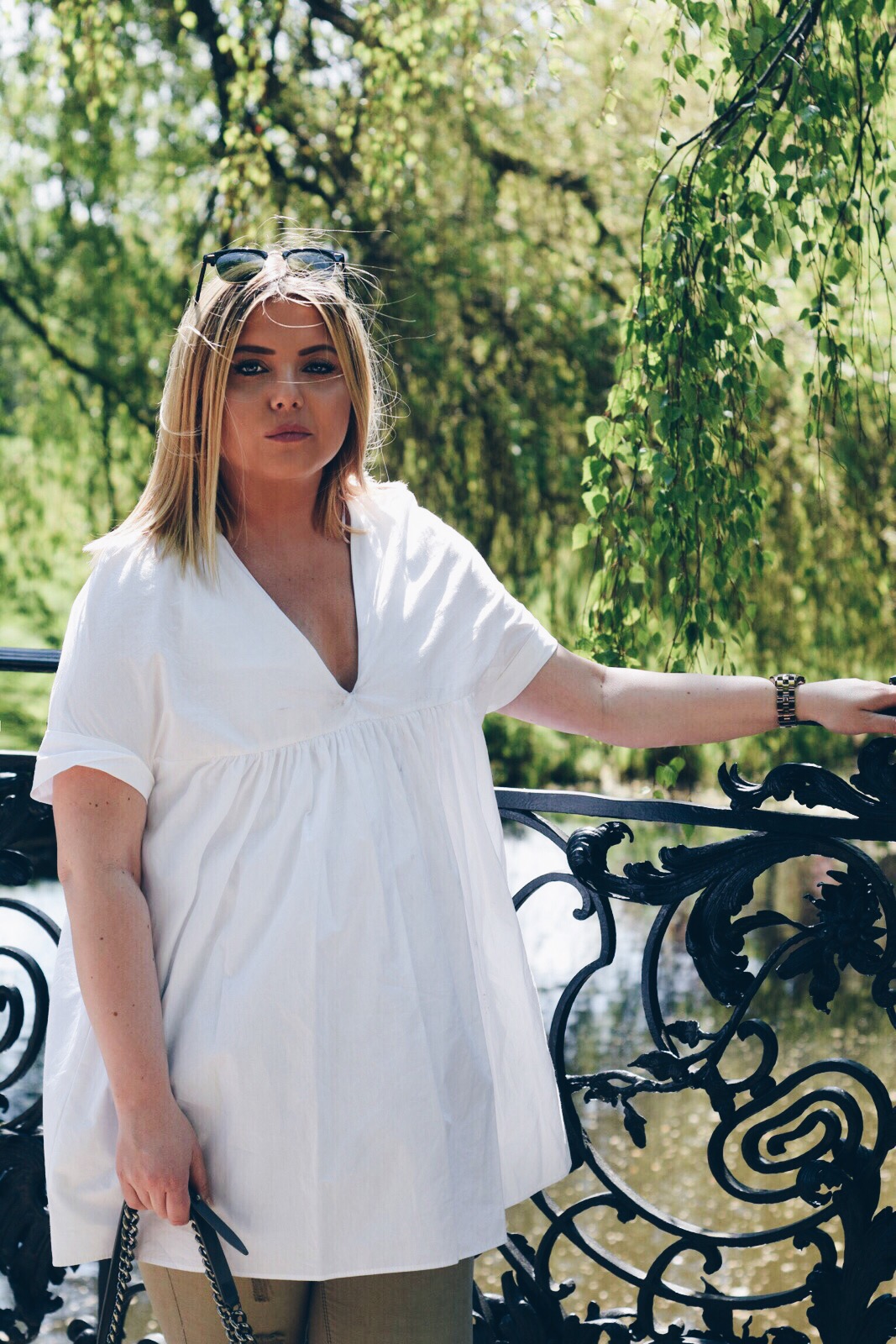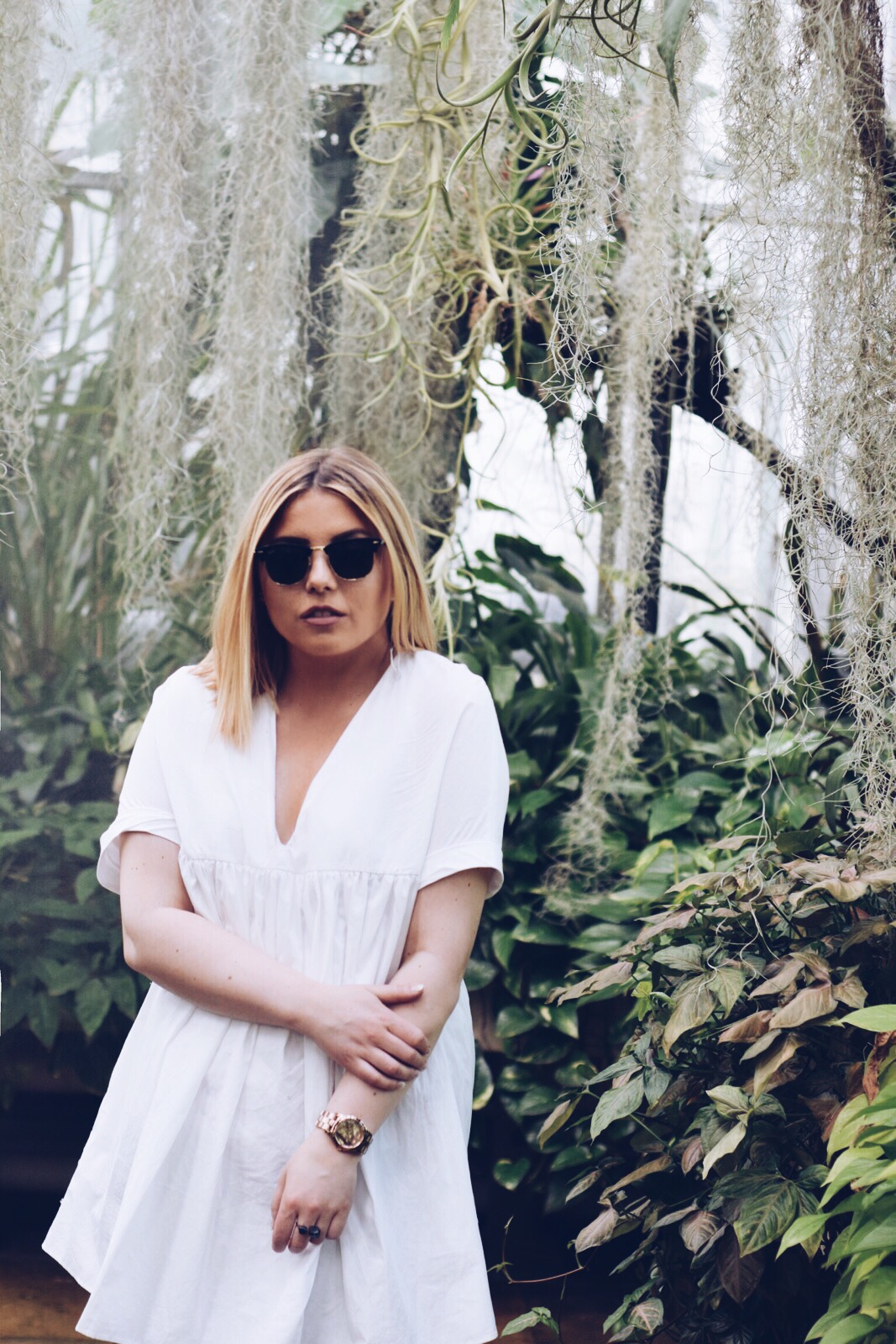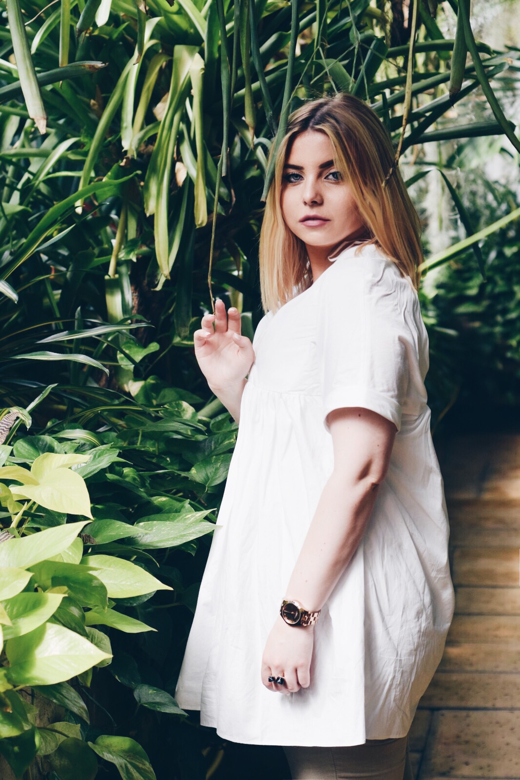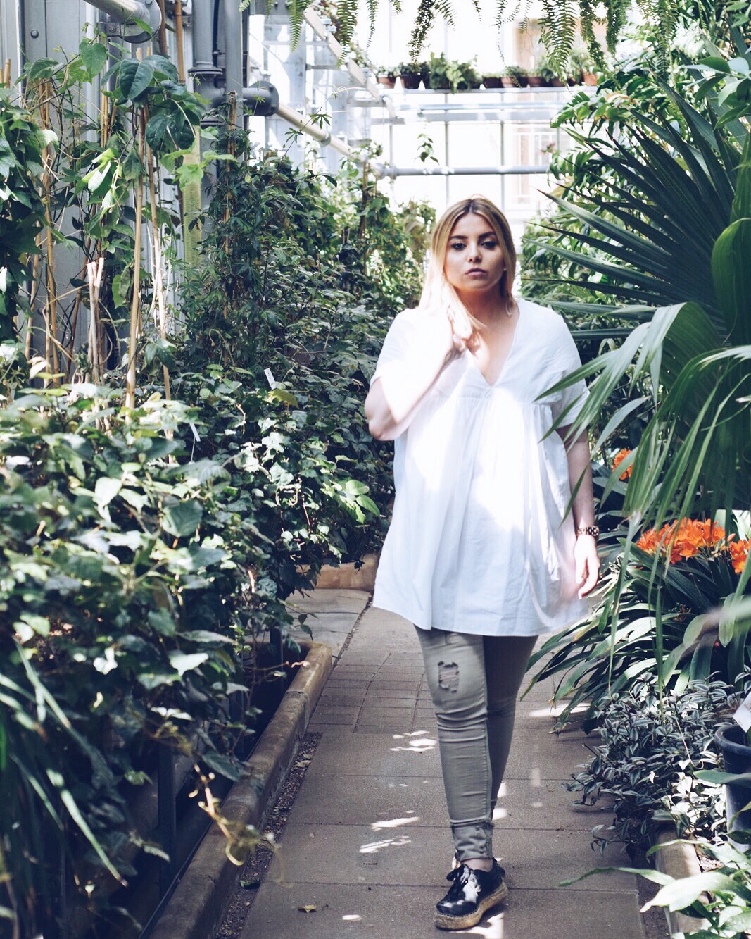 An kleinen französischen Brücken vorbei, verzaubert von prächtigen asiatischen Tempeln, überwältigt von der Größe der Schlösser gelangen wir an die Orangerie, neben der uns ein kleiner botanischer Garten entzückt. Für unschlagbare 2,- Euro besichtigen wir diesen sofort & verbringen dort Stunden & sind immer noch von der Pracht überwältigt- Ich bin überwältigt, denn in den Gewächshäusern gebe ich meiner Inspiration freien Lauf, hier könnte man auch heiraten, hier könnte man richtig klasse shooten – ein Traum wird wahr. ‚Grün‘ ist eigentlich eine Farbe, welche ich & auch so viele nicht so gerne auf Fotos sehen, doch hier ist es anders. Dieses Grün hat Stil, ich fühle mich sofort wie bei einem VOGUE Shooting & mein weißes Kleid/ Oberteil erstrahlt hier sogar viel besser wie auf den Fashionstreets.