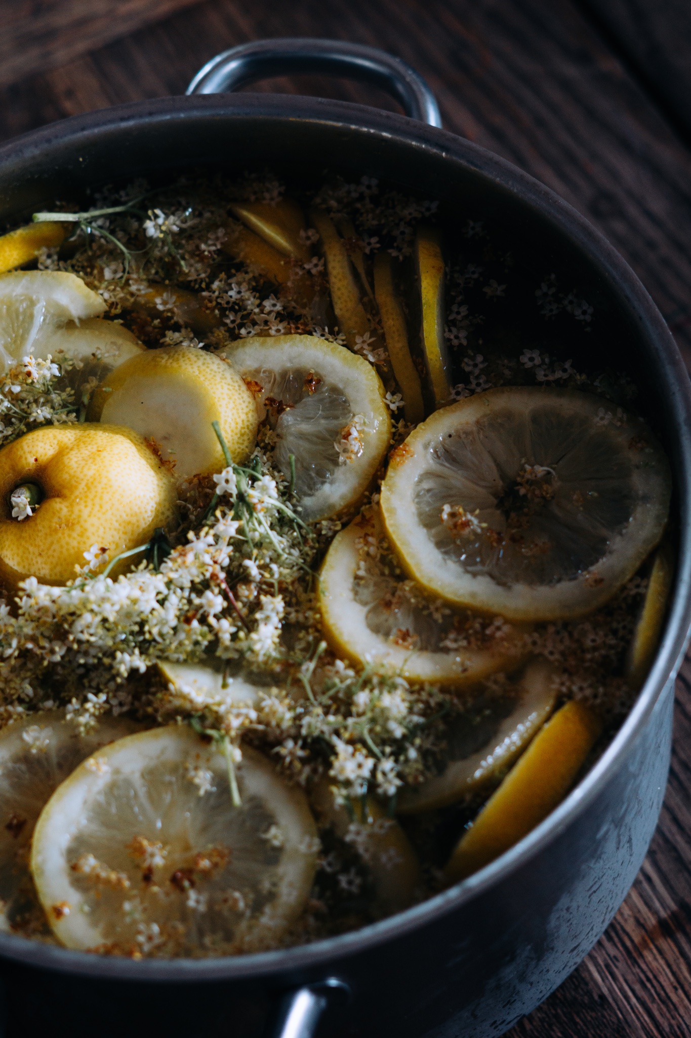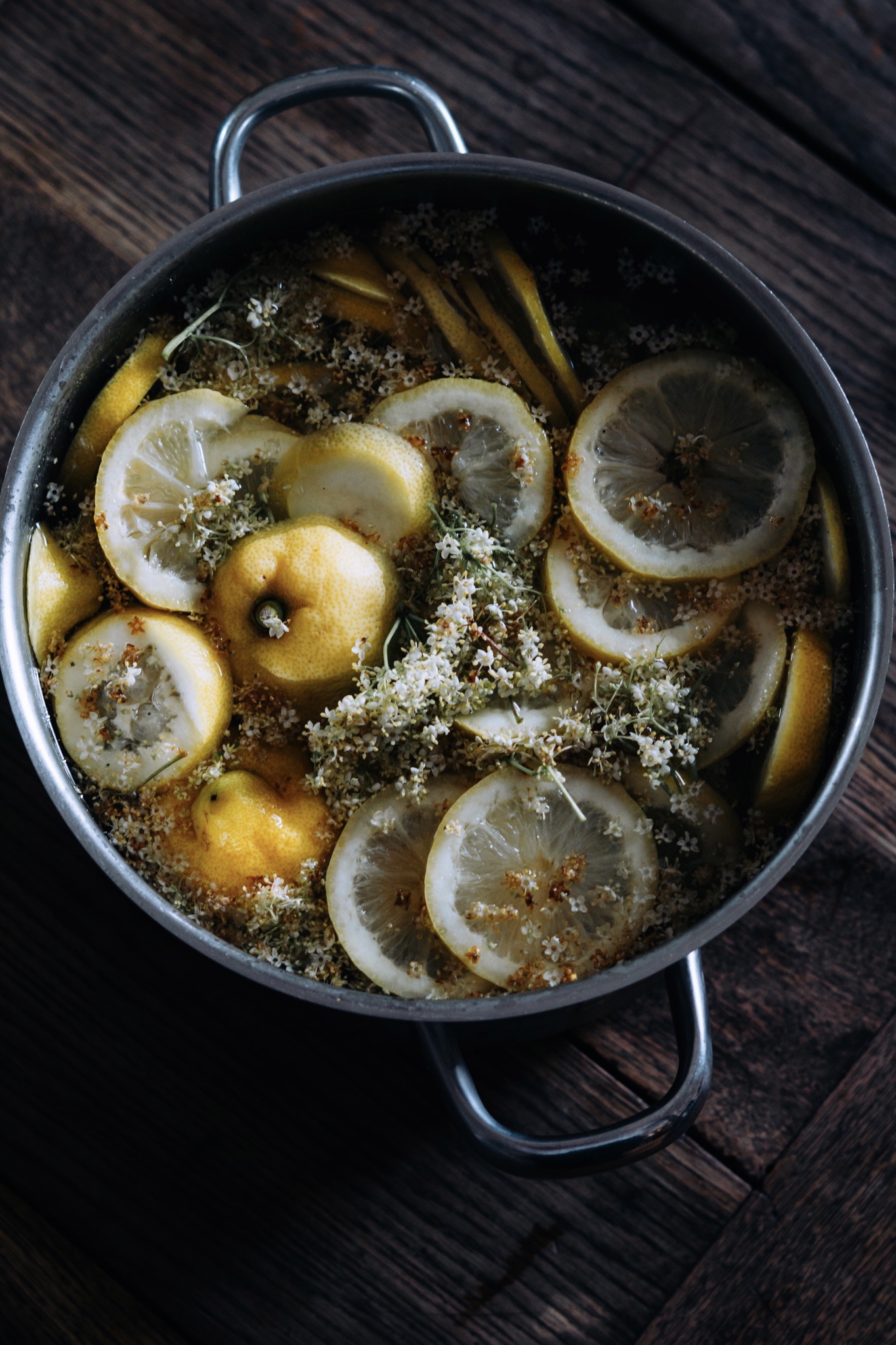 Alle Zutaten (außer den Rohr-Zucker) in einem Gefäß 3 Tage stehen lassen. Aus eigener Erfahrung kann ich euch sagen am besten kühl lagern. Denn auch Holunderblüten können schimmeln. Danach absehen & mit 3kg Zucker aufkochen.