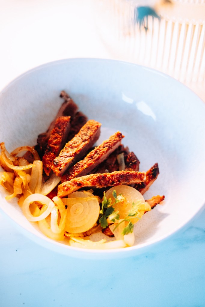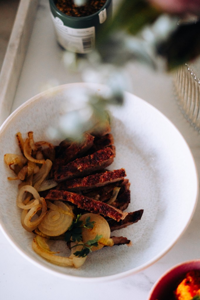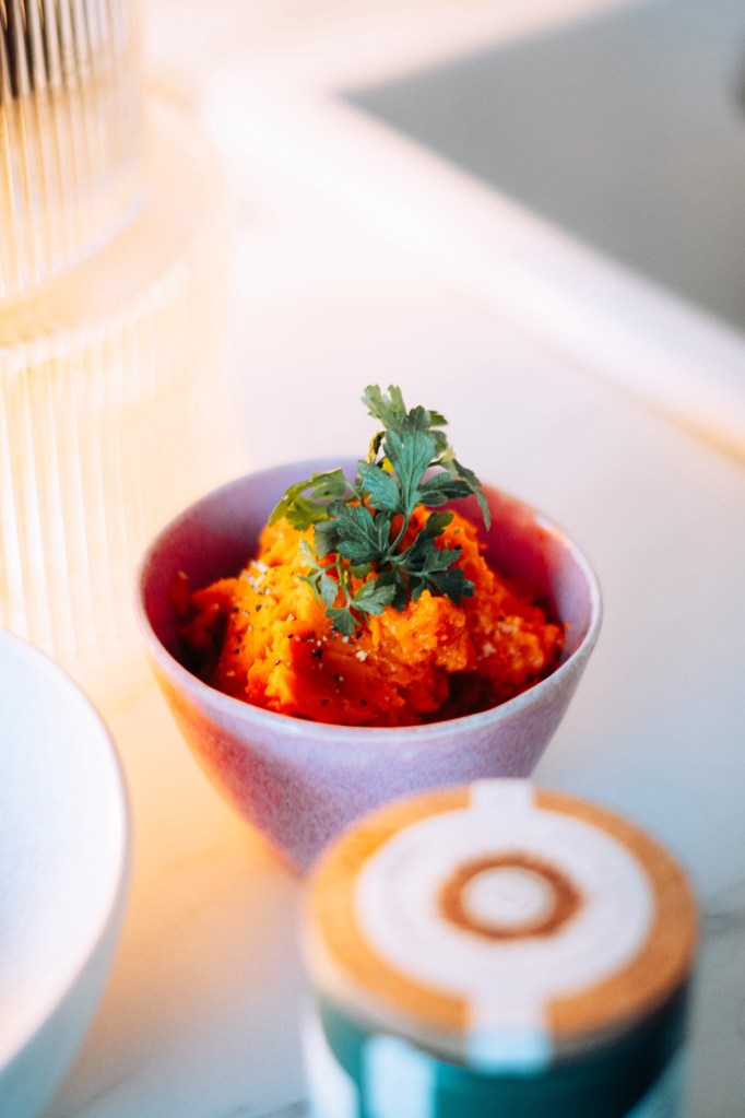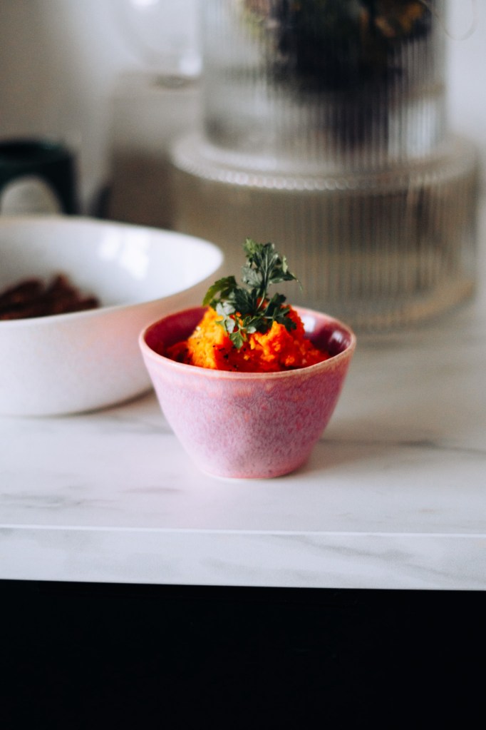 Dazu passt ein Süßkartoffel Püree mit Orangen Pfeffer. Ich sags euch ein a absolutes Geschmackserlebnis & eine komplett neue Kombi. Dazu bratet ihr leicht Zwiebelringe oder Schalotten an. Sie geben dem ganzen Gericht nicht das gewisse Etwas. Eine gelungene Köstlichkeit vor allem jetzt im Herbst.