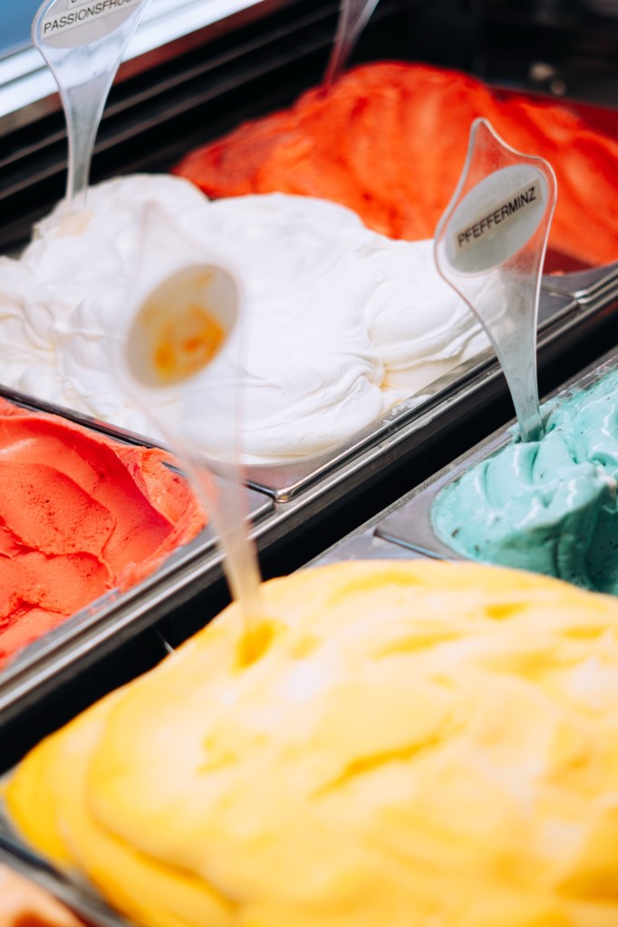 Die klassische Kugel Vanille hat längst Gesellschaft bekommen: Sorbets aus Mango oder Himbeere, vegane Sorten auf Kokos- oder Sojabasis, kreative Neuheiten wie Basilikum-Zitrone oder dunkle Schokolade mit Chili – der Fantasie sind kaum noch Grenzen gesetzt.