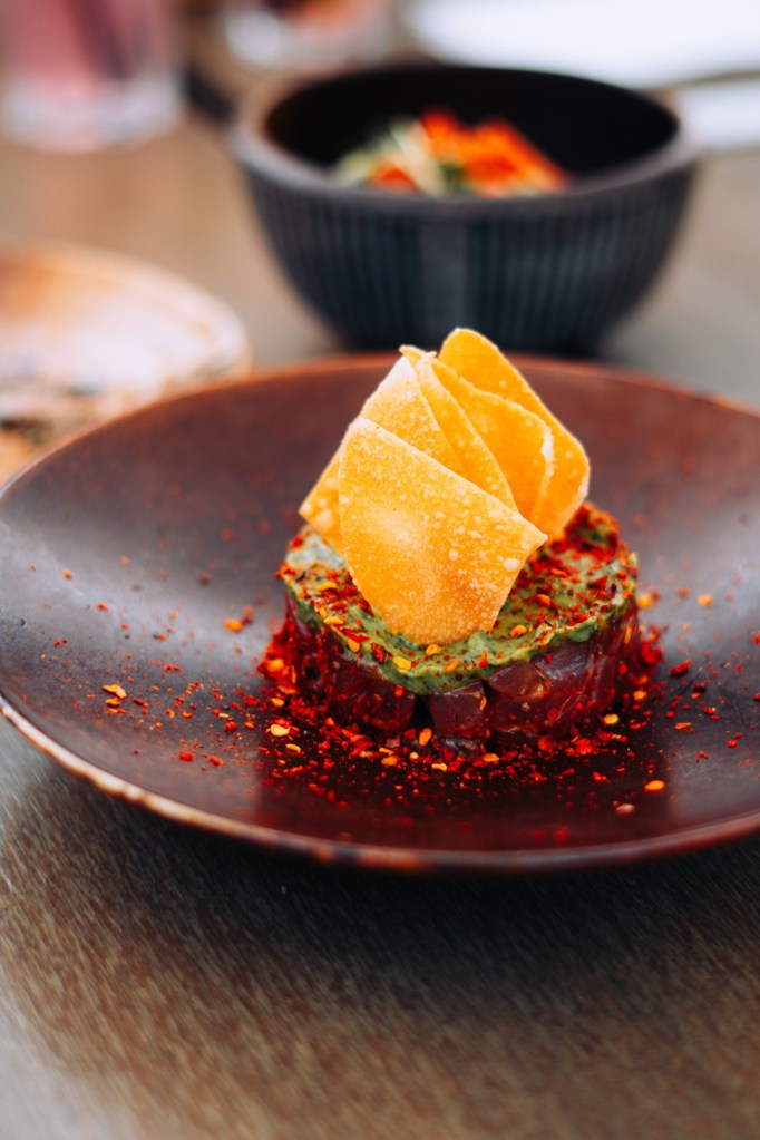 - SPICY TUNA TARTAR : Scharfes Thunfischtartar, Avocadocreme, Crakers